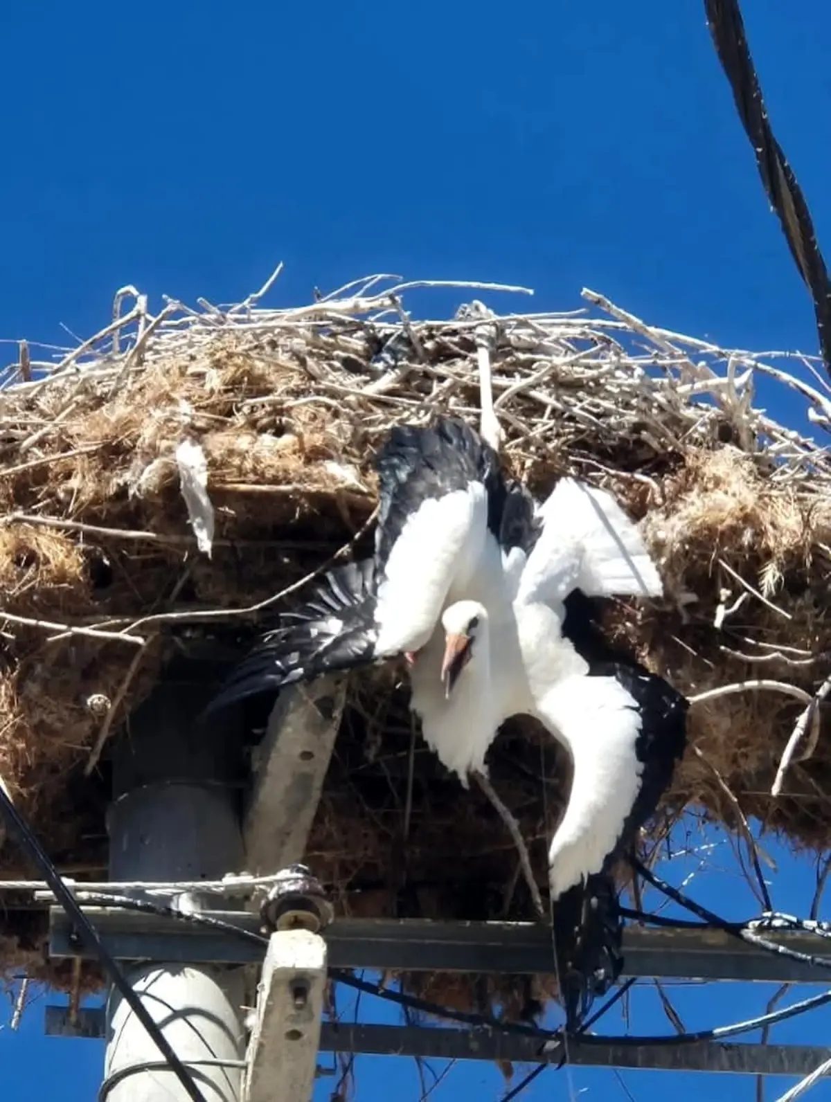 Afyonkarahisar’da elektrik direğinde leylek yaptığı yuvaya takılı kalınca devreye giren Osmangazi Elektrik Dağıtım A.Ş. (OEDAŞ) ekipleri tarafından kurtarıldı.