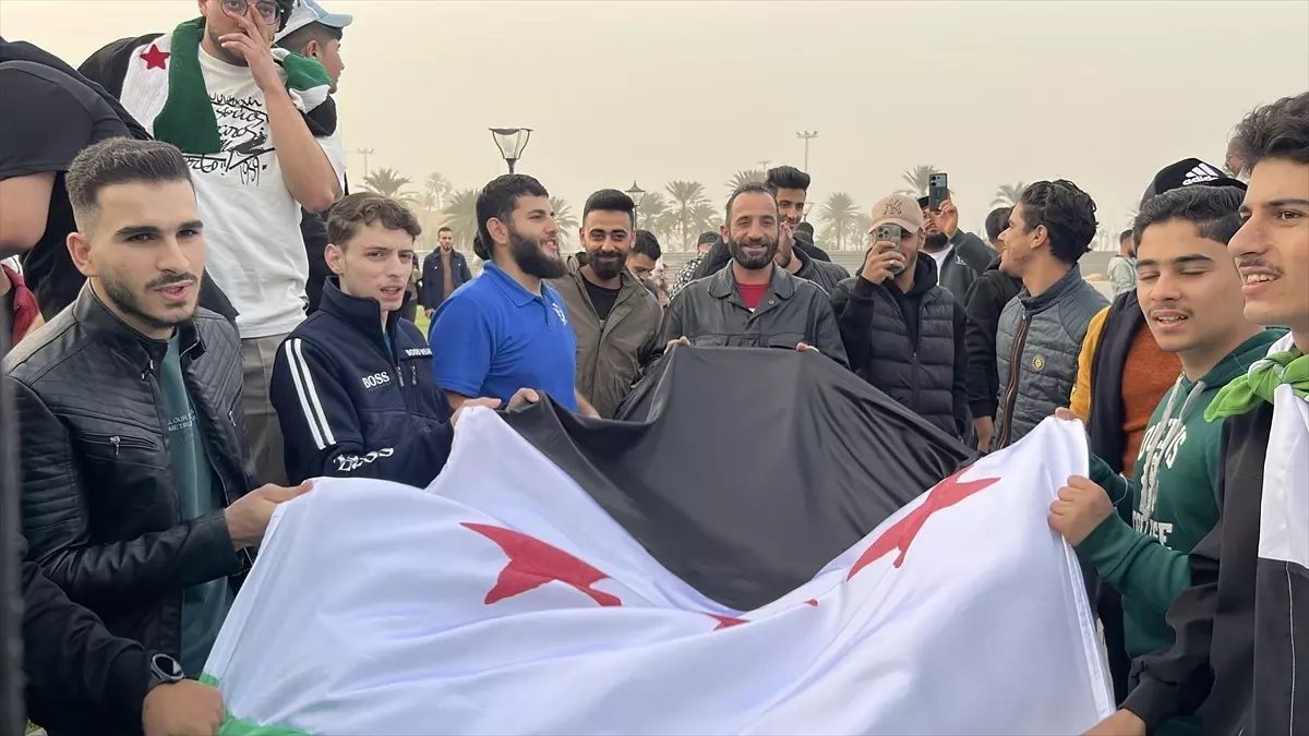 Şehitler Meydanı yakınında toplanan yüzlerce Suriyeli, ülkelerinin bayraklarını taşıyarak, “Başını dik tut sen özgür Suriyelisin” ve “Özgürlük, özgürlük, özgürlüğü ilan ediyoruz” sloganları attı.