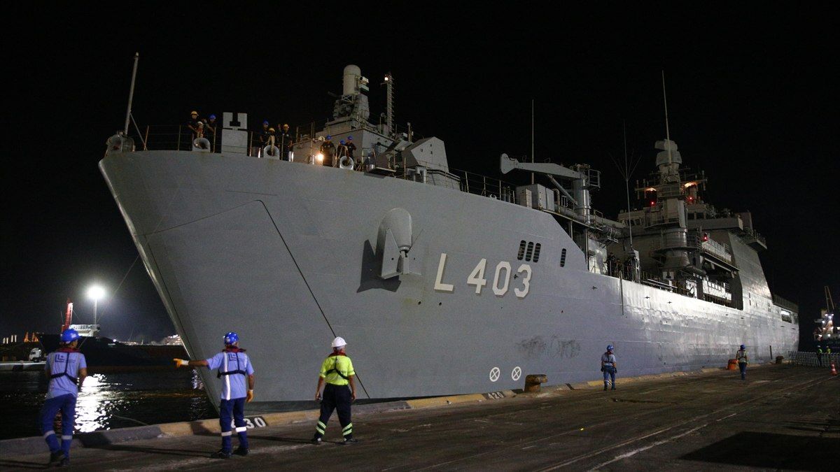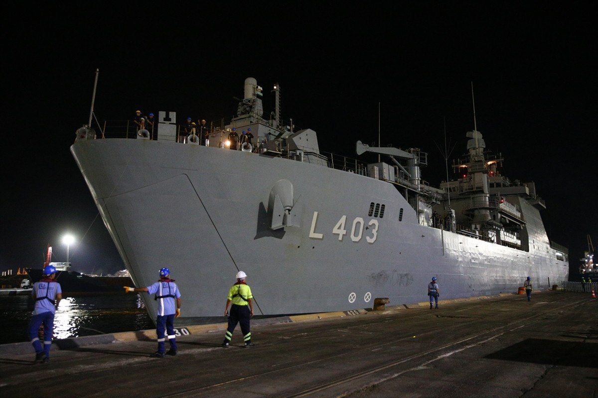 Yüklerin boşaltılmasının ardından sivillerin tahliyesini gerçekleştiren amfibi gemileri, 2 firkateyn ve 2 karakol gemisi eşliğinde Türkiye’ye dönüşe geçmişti.