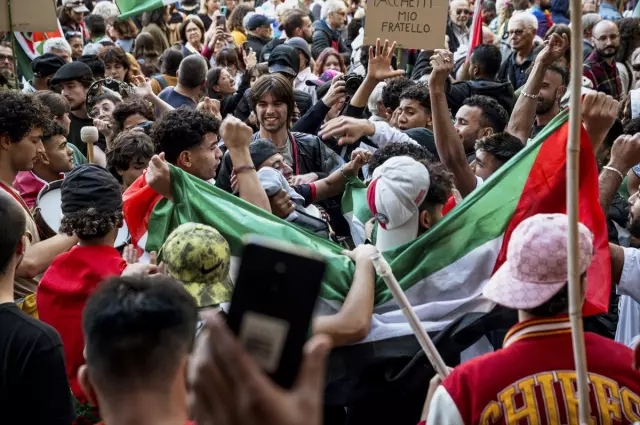 İtalya ile İsrail arasında Udine’de oynanan karşılaşma, saha içinde olduğu kadar saha dışında da tansiyonu yükseltti. Yaklaşık 10 bin kişinin katıldığı protestolarda, göstericiler “İsrail’e kırmızı kart göster!” pankartları açarak, ülkenin Gazze’deki eylemlerini protesto etti.