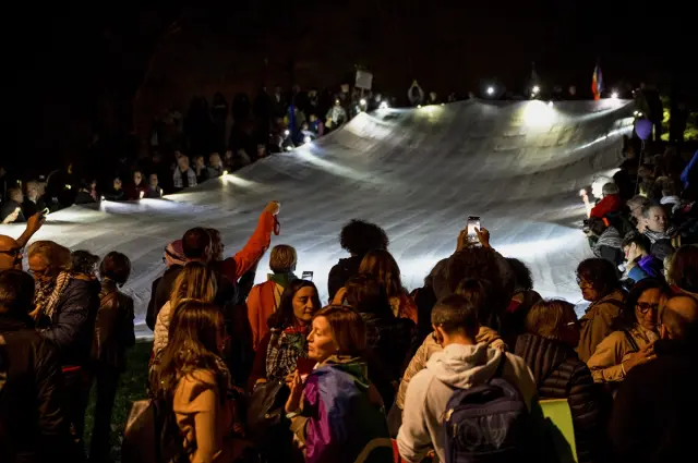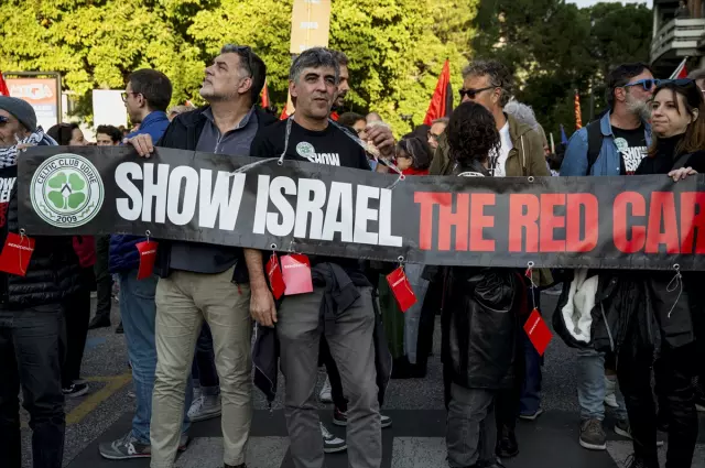 Göstericiler, İsrail’in uluslararası spor müsabakalarından men edilmesi gerektiğini savundu. Yürüyüşün son bölümünde bir grubun stada yaklaşmak istemesi üzerine güvenlik güçleri devreye girdi. Polis, göstericilere biber gazı ve tazyikli su ile müdahale etti.