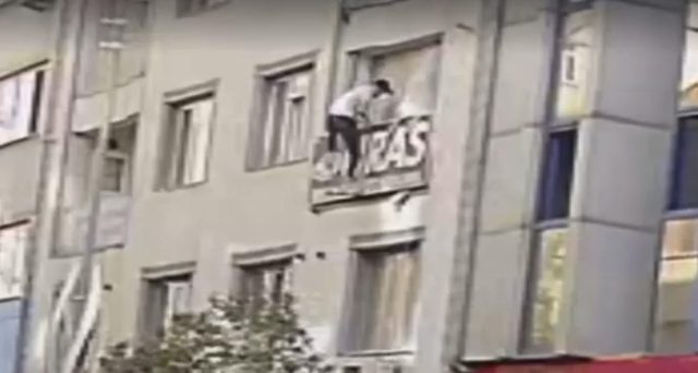 Deprem anında Hürriyet Caddesi’ndeki bir apartmanın 2’nci katında bulunan iş yerindeki 1 kişi de balkona çıkarak aşağıya sarktı. Daha sonra kararından vazgeçen kişi, tekrar balkona çıktı. O anlar, bir iş yerinin güvenlik kamerasına yansıdı.