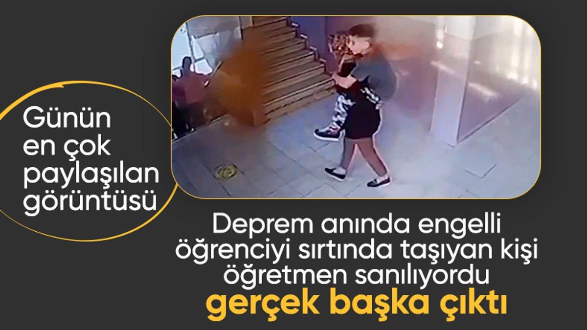 Depremle birlikte öğrenciler sınıfları terk ederken Emine Nezihe Parlak İlkokulu’nda hizmetli olarak görev yapan bir kadın da aynı okulda öğretim gören engelli oğlunu sırtında bina dışına taşıdı.