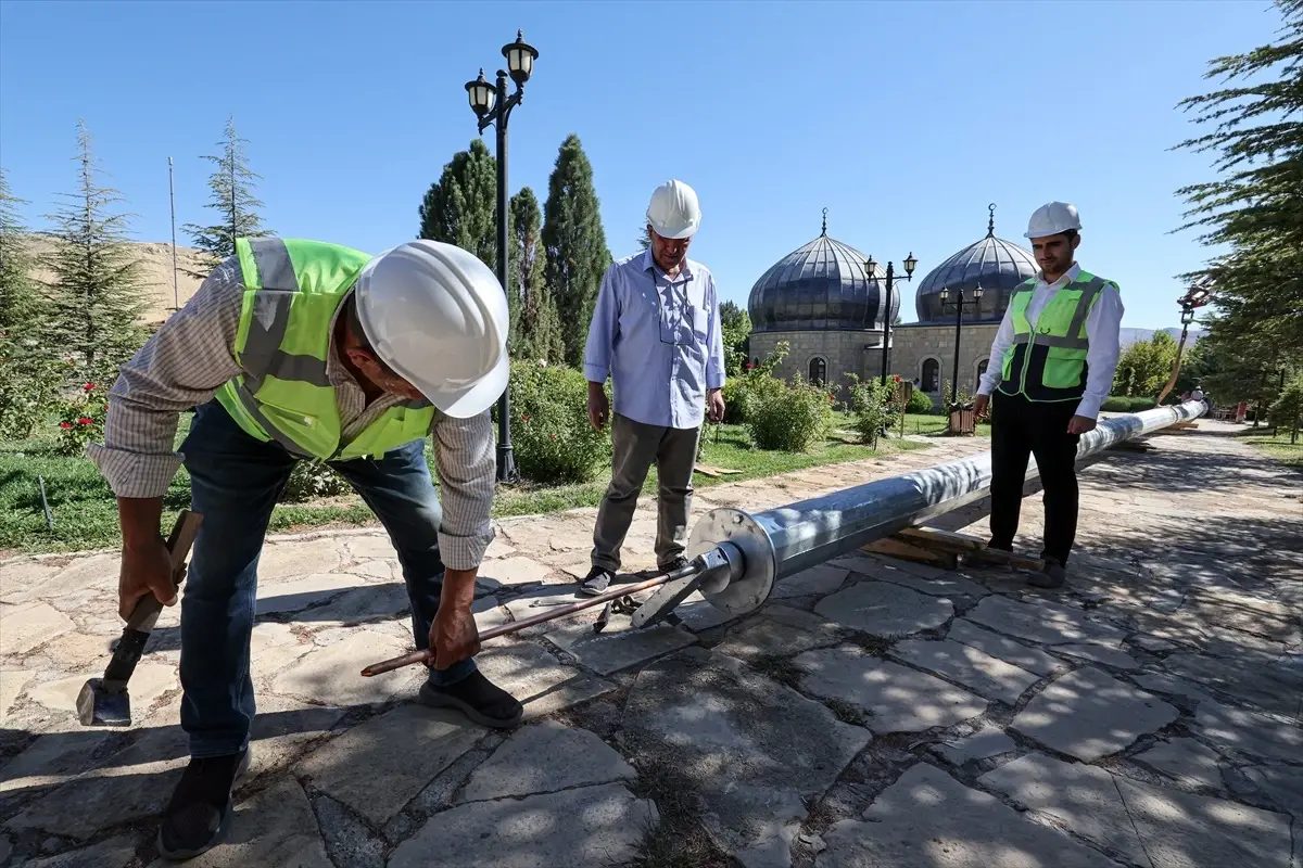 Malatya’nın Darende ilçesindeki Hasan Gazi Türbesi ve Şehitlik Anıtı’na 50 metre yüksekliğinde bayrak direği yerleştirildi.