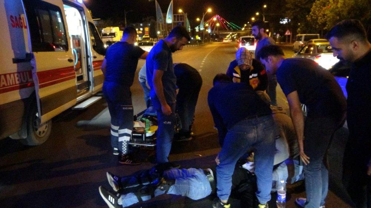 MOTOSİKLET SAVRULDU, SÜRÜCÜ VE YAYA YARALANDI
