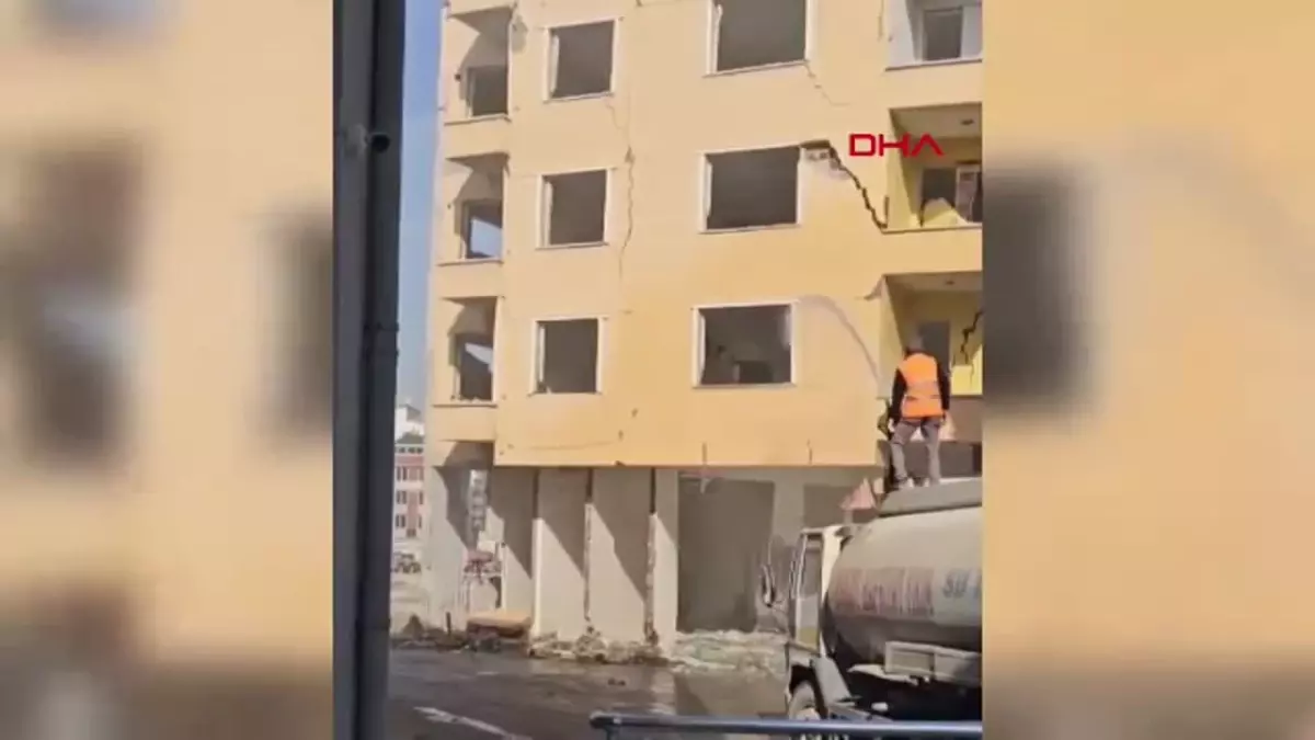 Kahramanmaraş merkezli 6 Şubat depremlerinin yıkıma yol açtığı Malatya’da, Niyazi Mısri Mahallesi’nde ağır hasarlı 3 katlı binanın yıkılması kararlaştırıldı. Ekiplerin iş makineleri ile kolonlarını zayıflattığı bina, daha sonra görevlilerin toz olmaması için tazyikli su sıktığı sırada aniden yıkıldı. Yıkım anı cep telefonu kamerasıyla kaydedilirken, kentte ağır hasarlı binaların yüzde 95’inin yıkımının tamamlandığı belirtildi.