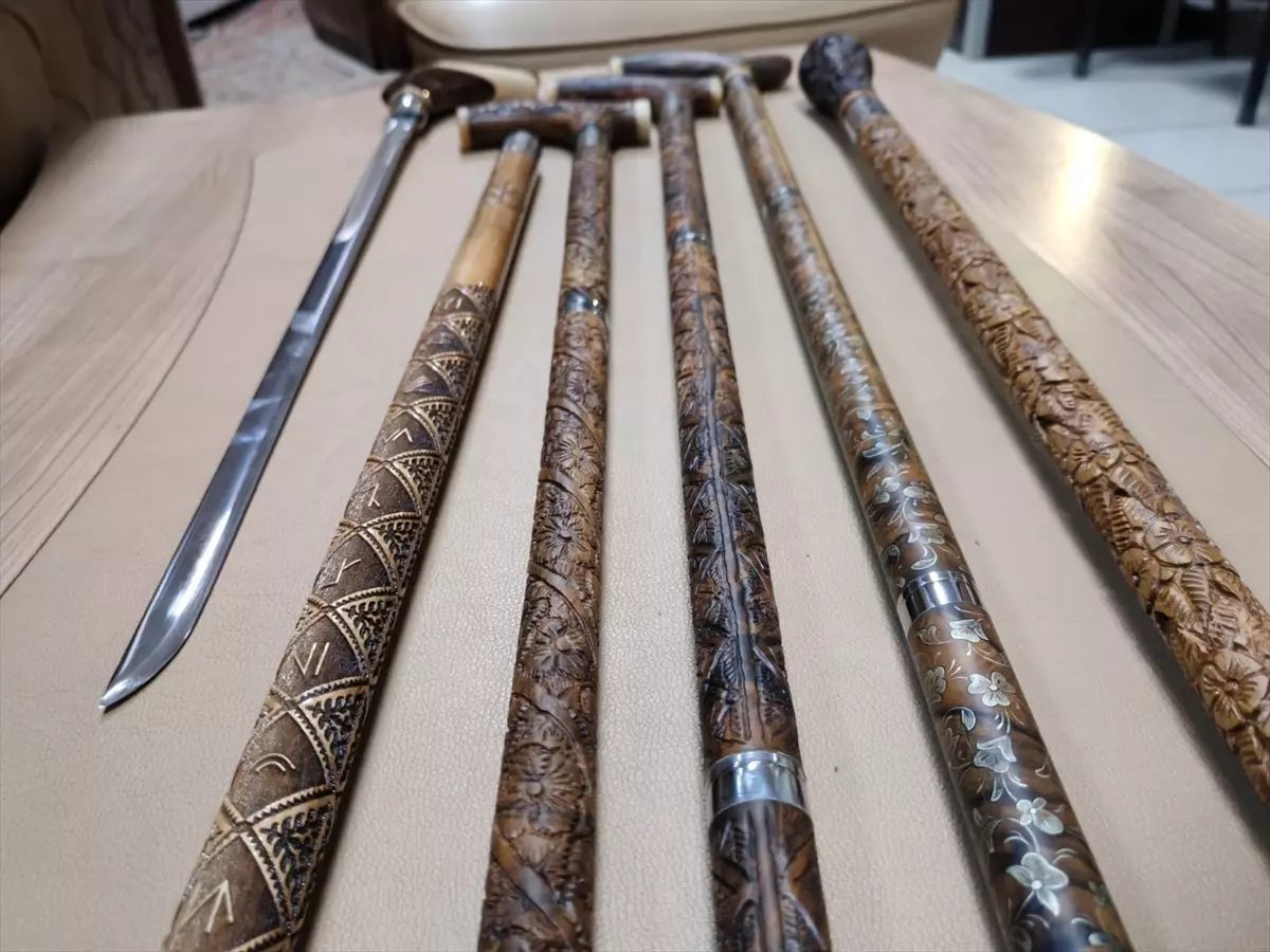 El işçiliğiyle özel bastonlar yapan Gökbulak, Malazgirt Zaferi’nin 954’üncü yılına özel bastonlar üretti.