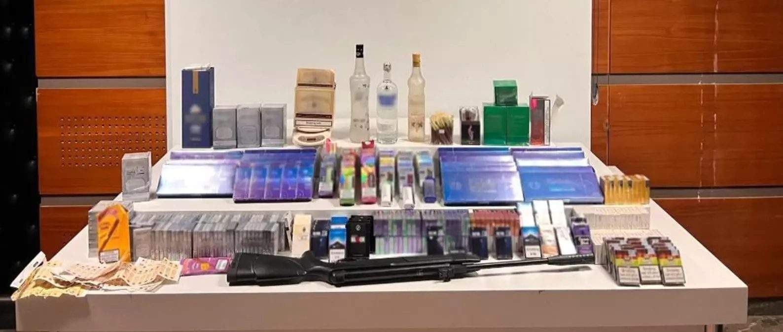 İstanbul Emniyet Müdürlüğü görevlileri Maltepe’de 2 ayrı iş yerinde kaçak şekilde sigara ve alkol üretimi yapıldığını tespit etti. Ekipler 9 Eylül 2024 tarihinde Maltepe Küçükyalı ve Çınar Mahallelerinde faaliyet gösteren işyerlerine yönelik operasyon düzenledi. Operasyonda 2 ayrı işyerinin de yetkilisi olduğu belirlenen T.K. isimli şahıs yakalandı. Yapılan aramalarda ise; 1 adet havalı tüfek, 444 paket bandrolsüz kaçak sigara, 25 adet elektronik sigara, 89 adet elektronik sigara kartuşu, 24 paket puro, 12 adet sarma puro, 11 paket kaçak tütün, 24 adet makaron, 3 şişe sahte alkol, 58 parça sahte bandrol ele geçirildi. Konu ile ilgili yakalanan şüpheli şahıs hakkında ‘6136 Sayılı Kanuna Muhalefet’ ve ‘5607 Sayılı Kaçakçılıkla Mücadele Kanunu’ maddesinden adli işlem başlatıldı. – İSTANBUL