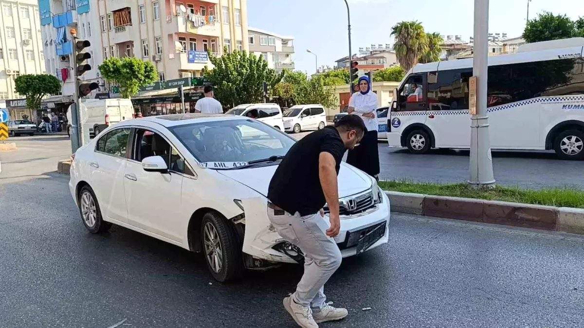 Manavgat'ta meydana gelen kazada kırmızı ışık ihlali yapan bir araç, başka bir araca çarptı. Kazada şans eseri yaralanan olmazken, araçlarda büyük çapta maddi hasar meydana geldi.