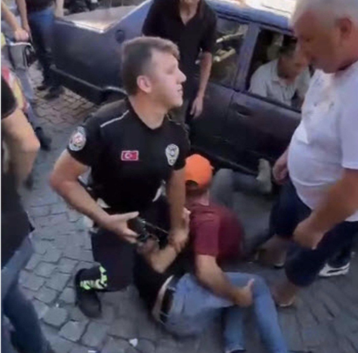 Çevredekilerden biri, müdahale etmek için yaklaştı ancak Yılmaz Akman’ın ‘Bırak lan’ diye bağırması ile geri çekildi.
