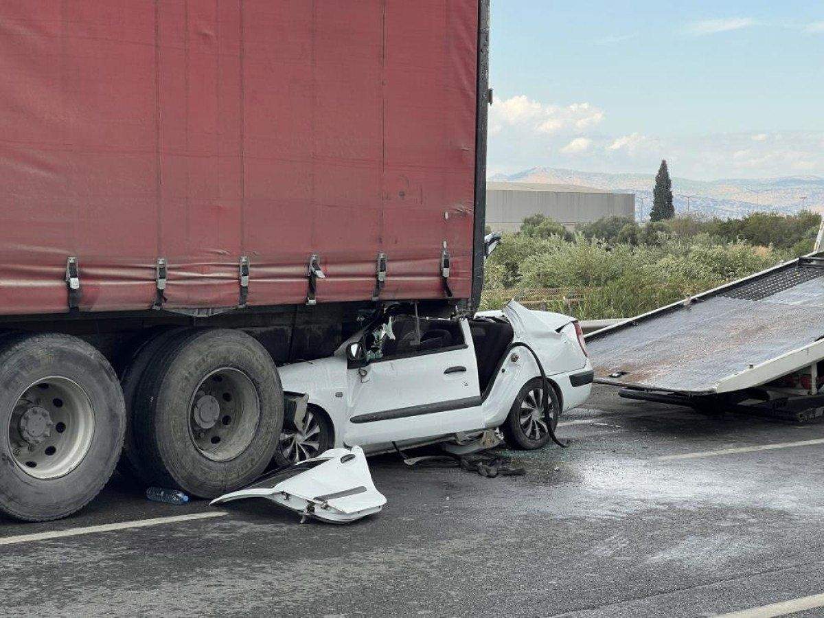 Manisa’nın Yunusemre ilçesi İzmir – İstanbul çevreyolu üzerinde A.V. idaresindeki 45 ALL 514 plakalı otomobil aynı istikamette seyir halindeki C.D. idaresindeki 35 BDD 416 plakalı kamyona arkadan çarptı.