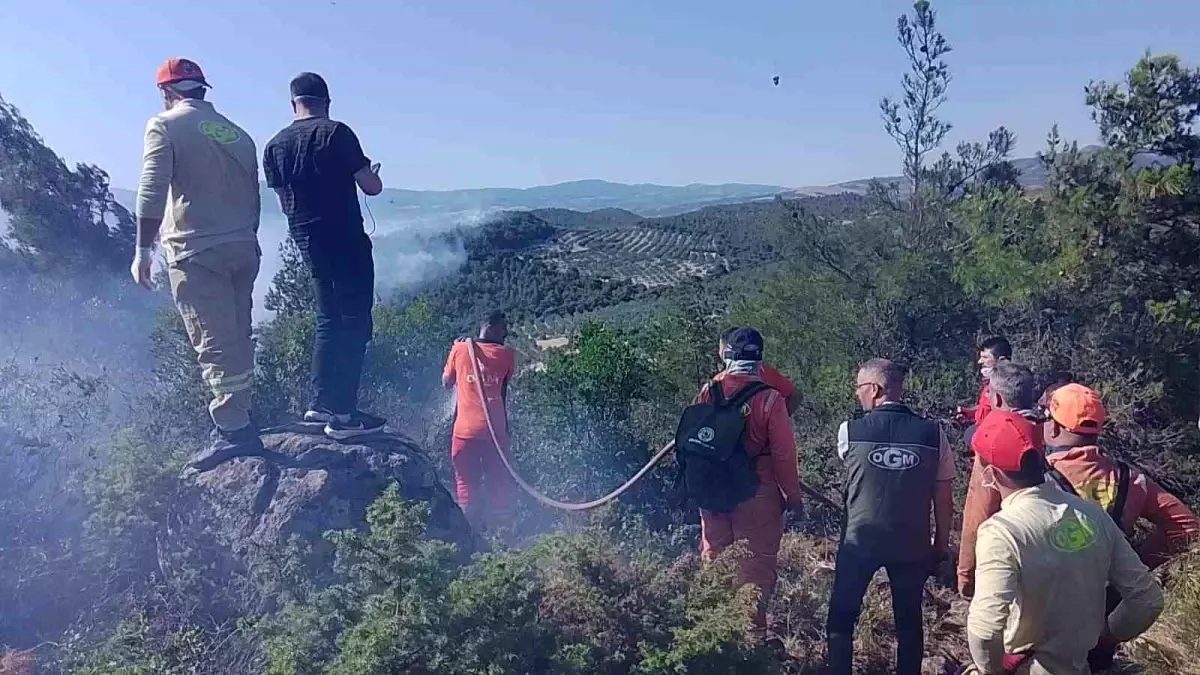 Manisa’nın Kırkağaç ilçesinde başlayan orman yangını İzmir Orman Bölge Müdürlüğü ekiplerinin havadan ve karadan müdahalesiyle kontrol altına alınırken soğutma çalışmaları devam ediyor.