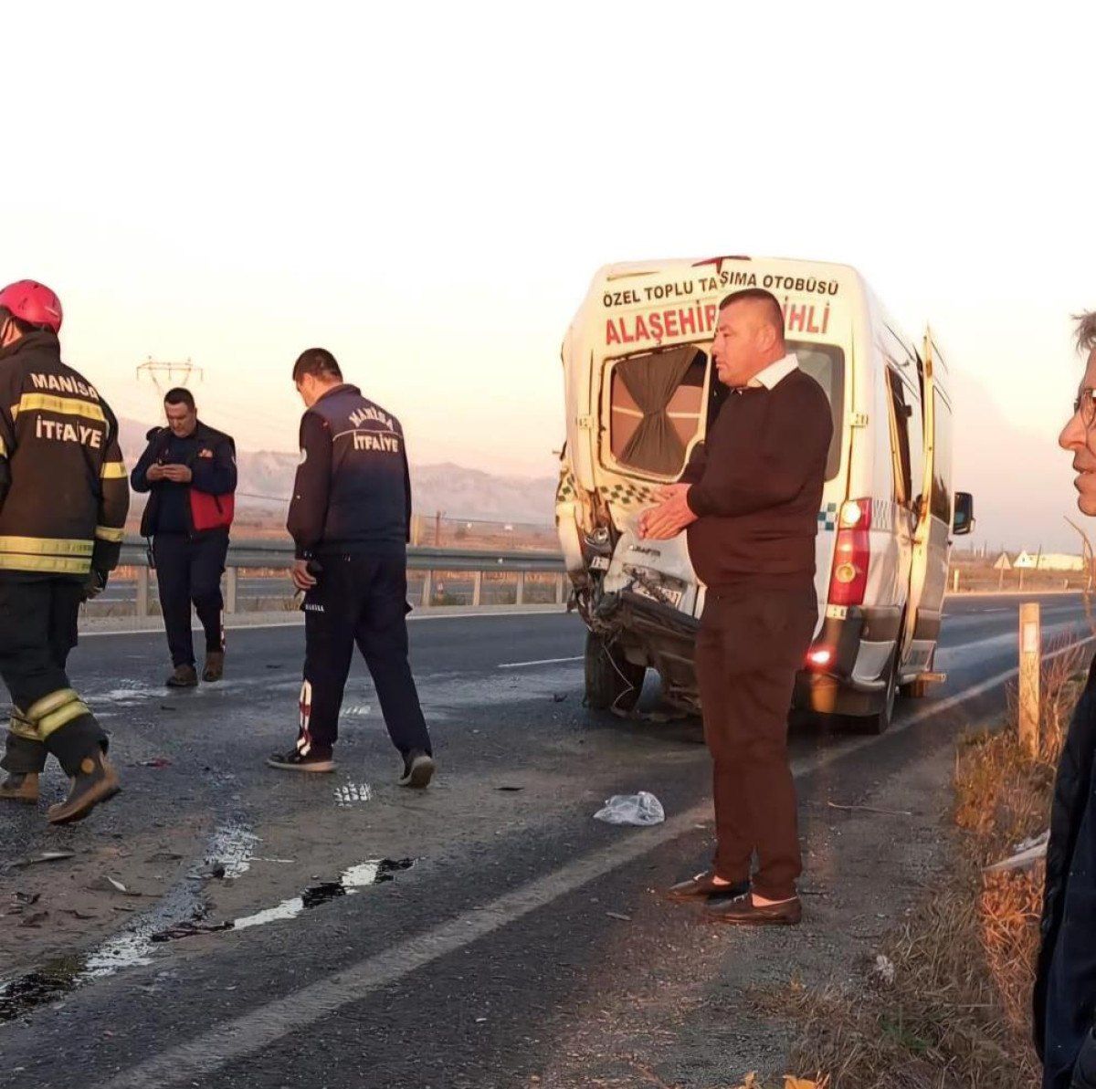 Manisa’nın Alaşehir ilçesinde, Alaşehir’den Salihli yönüne seyir halinde olan N.Ç. yönetimindeki 38 AE 288 plakalı otomobil, aynı yönde yolcu indiren S.Ç. yönetimindeki 45 ZB 803 plakalı minibüse arkadan çarptı.