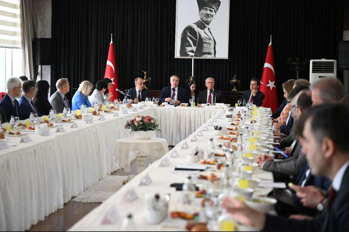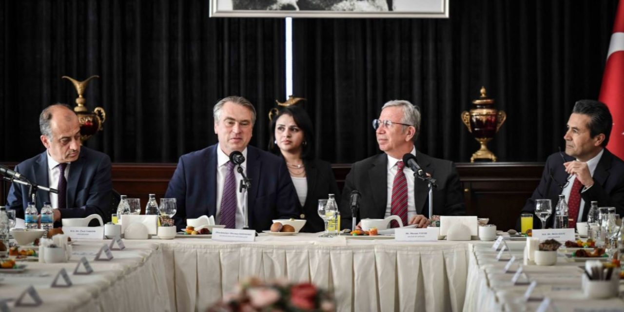 ABB Başkanı Mansur Yavaş, AB Türkiye Delegasyonu Başkanı Büyükelçi Thomas Hans Ossowski ve AB üyesi ülkelerin Ankara’daki büyükelçileriyle görüştü.