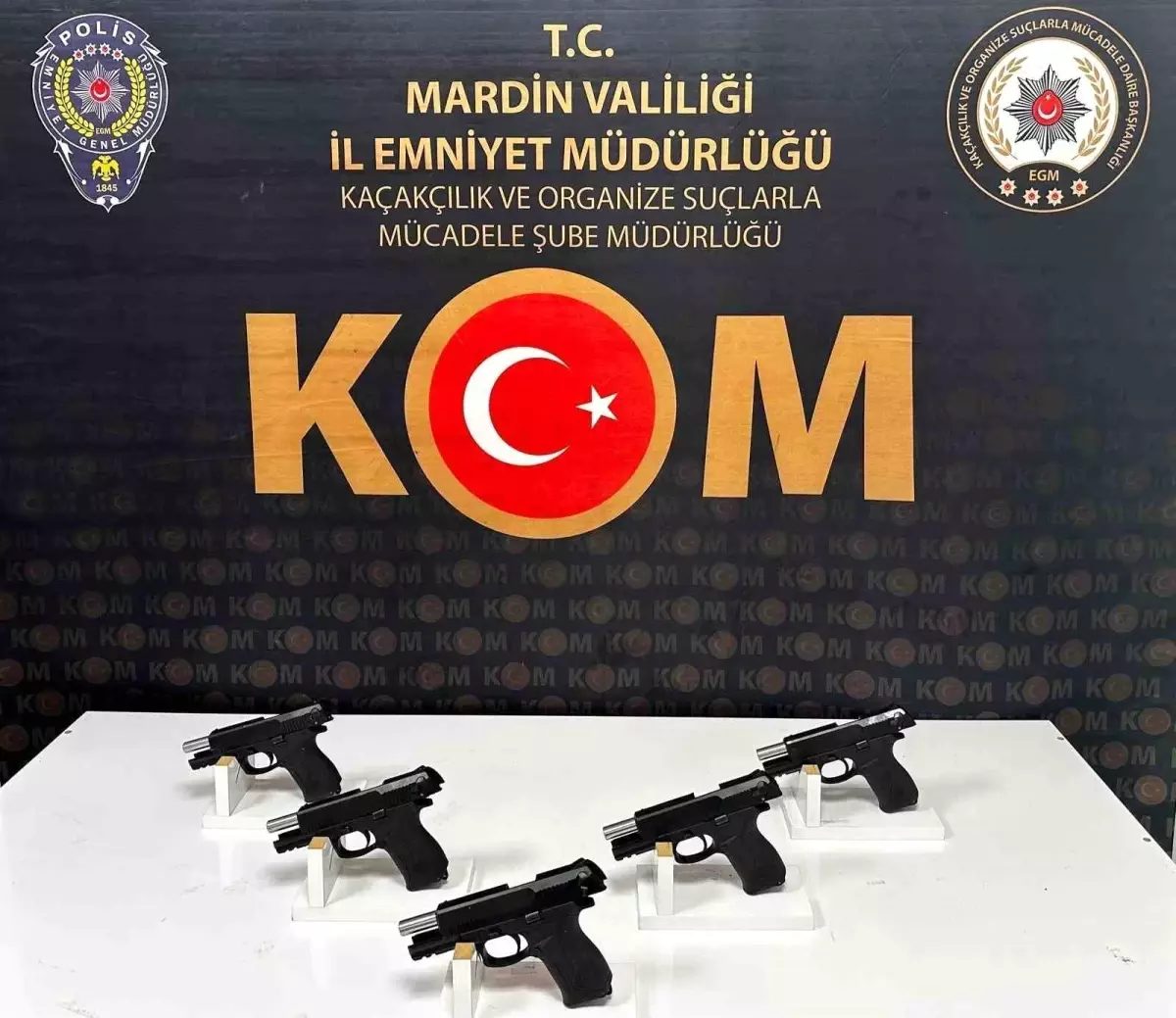 Mardin’in Kızıltepe ilçesinde durdurulan bir araçta 5 ruhsatsız tabanca ele geçirildi. Gözaltına alınan şahıs tutuklandı.