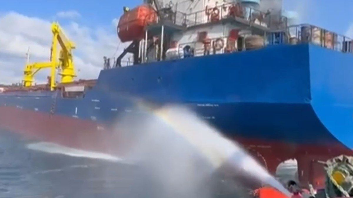 Marmara Denizi açıkladında kuru yük gemisinde çıkan yangın kısa sürede paniğe yol açtı.