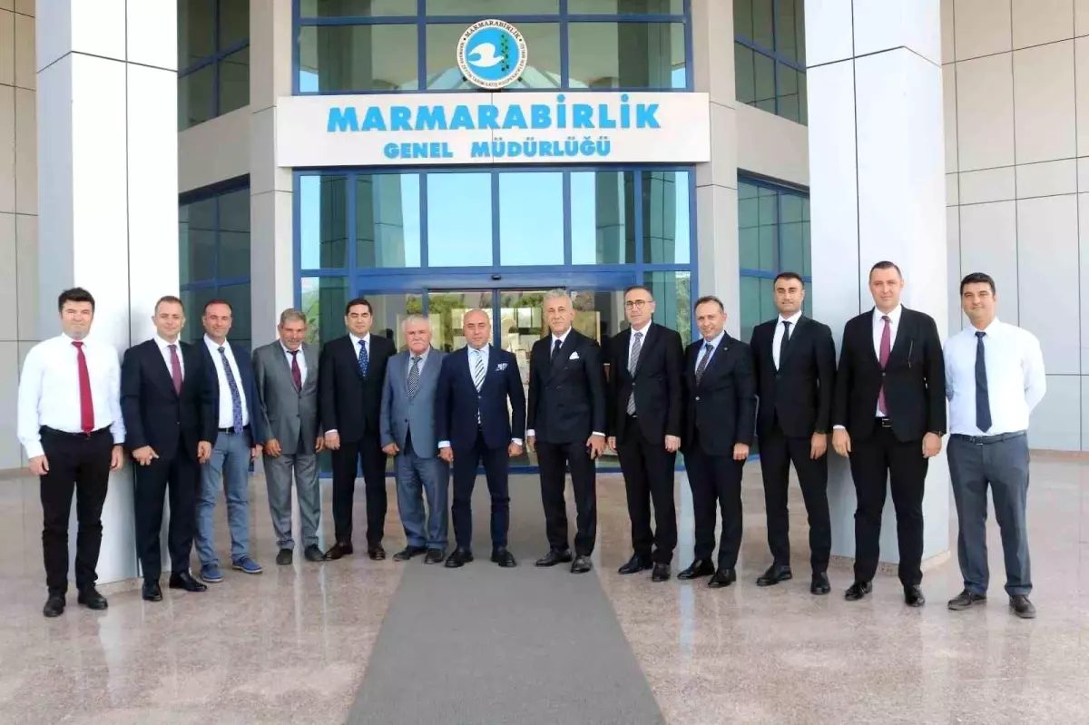 Marmarabirlik Genel Müdürlüğü’nde gerçekleşen toplantıya Marmarabirlik Yönetim Kurulu Üyeleri ile birlikte Vakıfbank’tan Ticari Bankacılık Pazarlama Başkanı Ahmet Yılmaz, Kobi ve Tarım Bankacılığı Pazarlama Başkanı Tevfik Erpek, Tarım Bankacılığı Satış Koordinasyon Müdürü Volkan Yeniyurt, Bursa Ticari Müdürü Orhan Kırmalı ve Bursa Bölge Müdürü Necmettin Şimşek ve Ticari Bankacılık Satış Koordinasyon Müdürü Murat Kaya katılım gösterdi. – BURSA