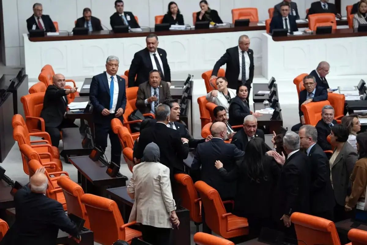 Konuşmaların ardından İYİ Parti ile DEM Partili vekiller arasında tansiyon yükseldi. Milletvekilleri ayaklanıp birbirlerine yürürken, kavgayı araya giren diğer vekiller sonlandırdı.