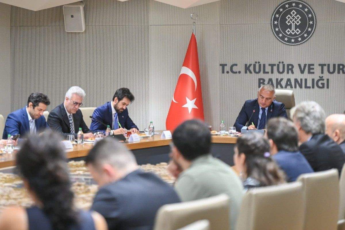 Görüşmeye Kültür ve Turizm Bakan Yardımcısı Batuhan Mumcu ve Devlet Tiyatroları Genel Müdürü Tamer Karadağlı da katıldı.
