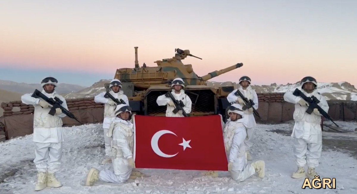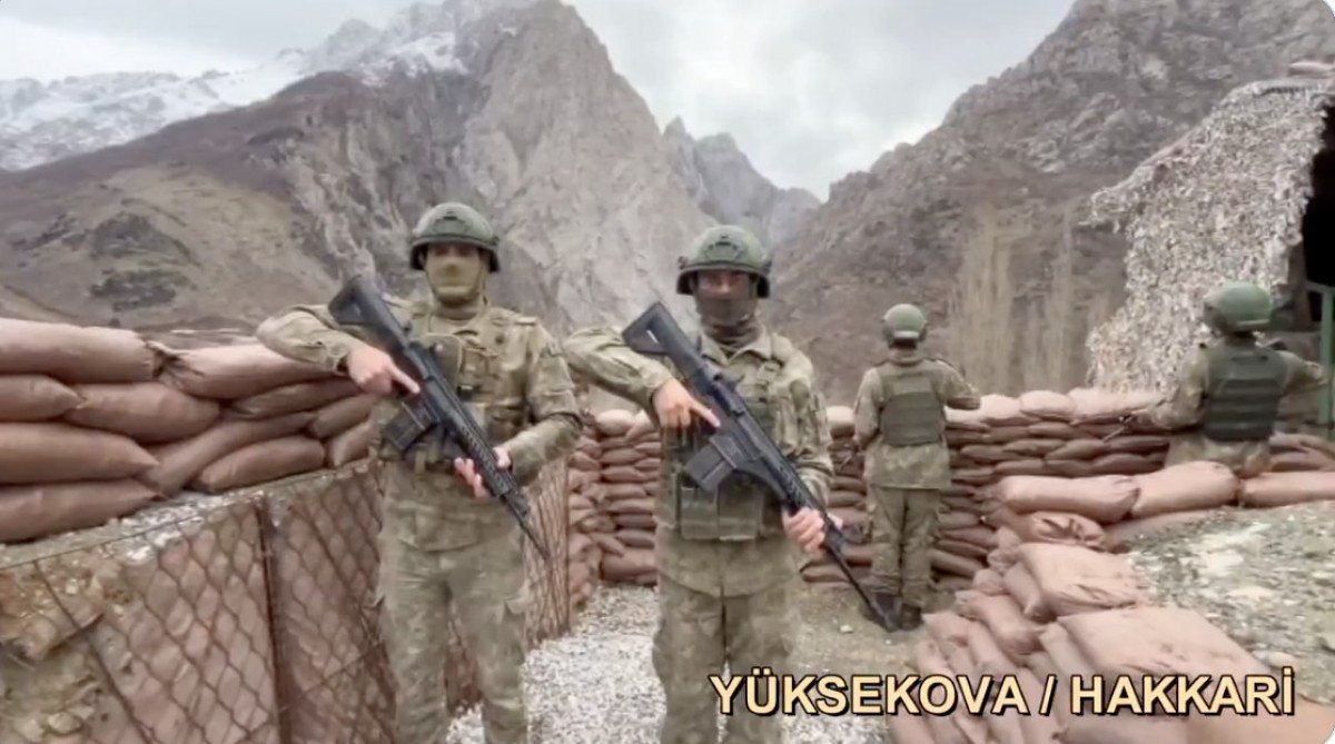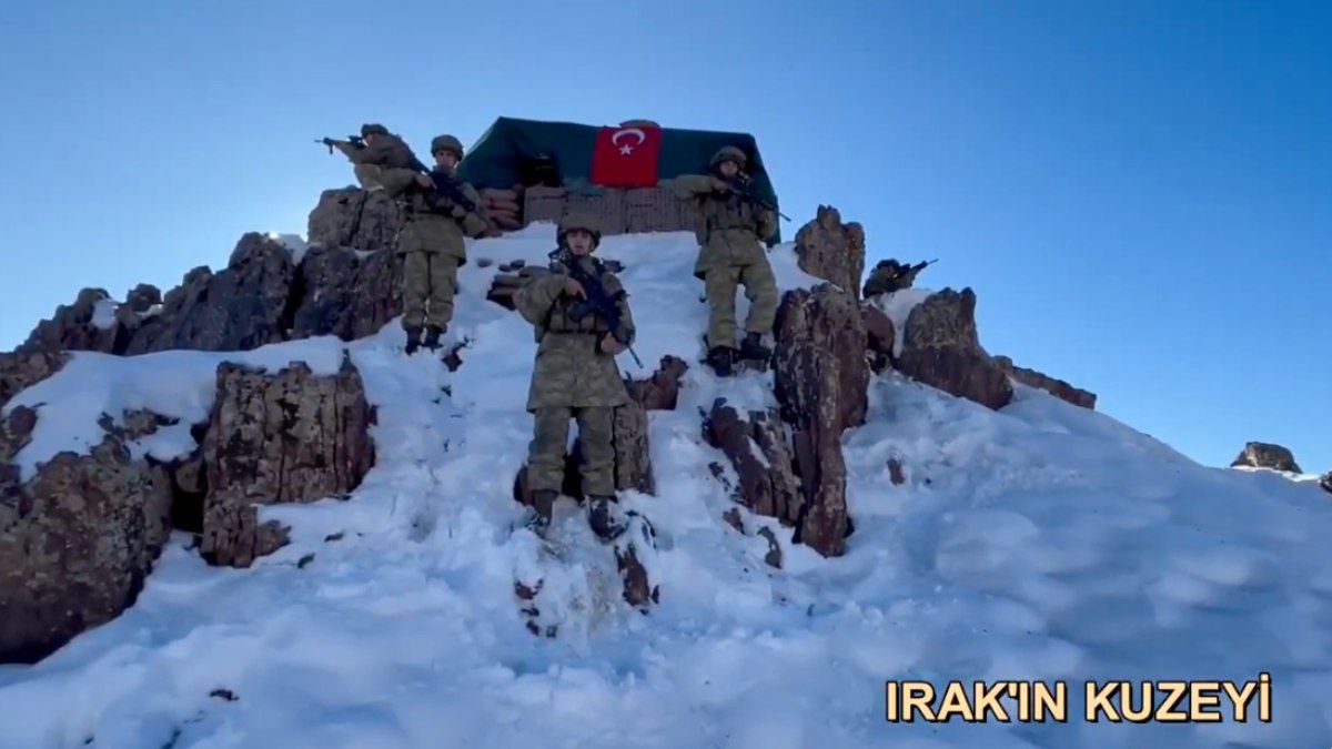 Irak’ın kuzeyinde sarp ve karlı dağlarda görev yapan Mehmetçik mesajında, “Demir pençelerimiz arasına sıkıştırdığımız PKK’lı teröristlere kilit vurmak için mücadele verdiğimiz Irak’ın kuzeyinden selam olsun milletimize.