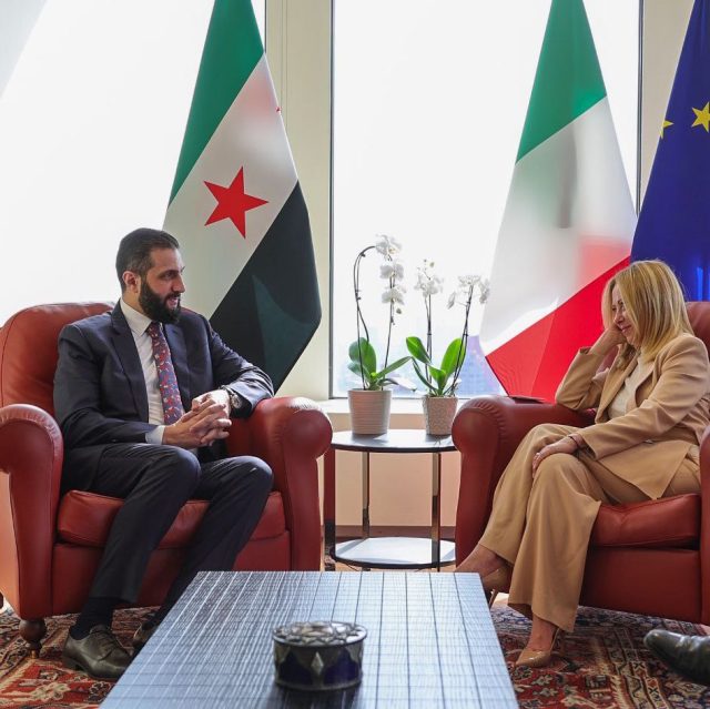 Birleşmiş Milletler Genel Kurulu’nun (BMGK) 80. oturumu ABD’nin New York kentinde devam ederken, liderler arasındaki ikili temaslar dikkat çekiyor. Bu kapsamda Suriye Cumhurbaşkanı Ahmed Şara, İtalya Başbakanı Giorgia Meloni ile New York’taki İtalya Daimi Temsilciliği’nde görüştü.
