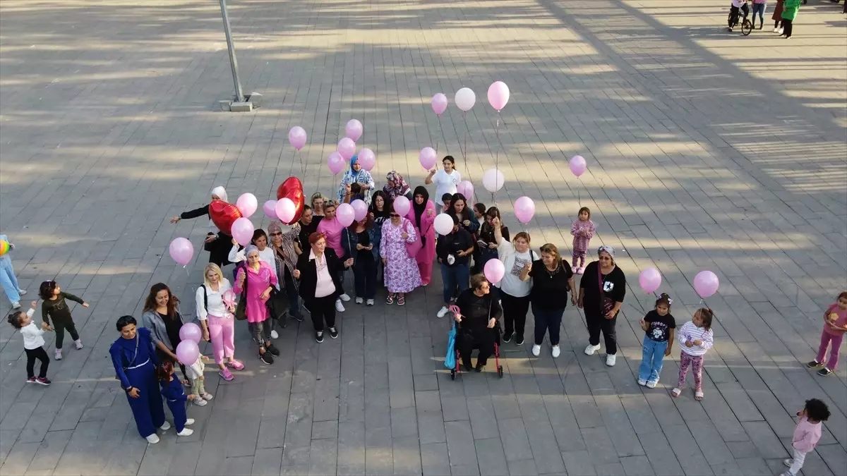 Hatay’da yakalandığı meme kanserini 5 yıllık mücadelesinin ardından yenen 48 yaşındaki Hatice Eryaşar için gökyüzüne pembe balonlar bırakıldı.
