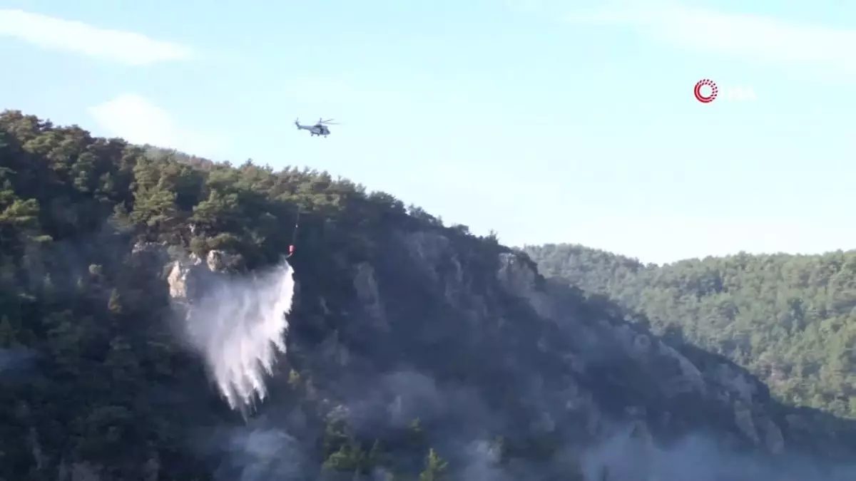 MUĞLA – Muğla’nın Menteşe ilçesindeki orman yangını 20’nci saatine girerken, sarp arazide süren yangını kontrol altına almak için havadan müdahale ediyor.