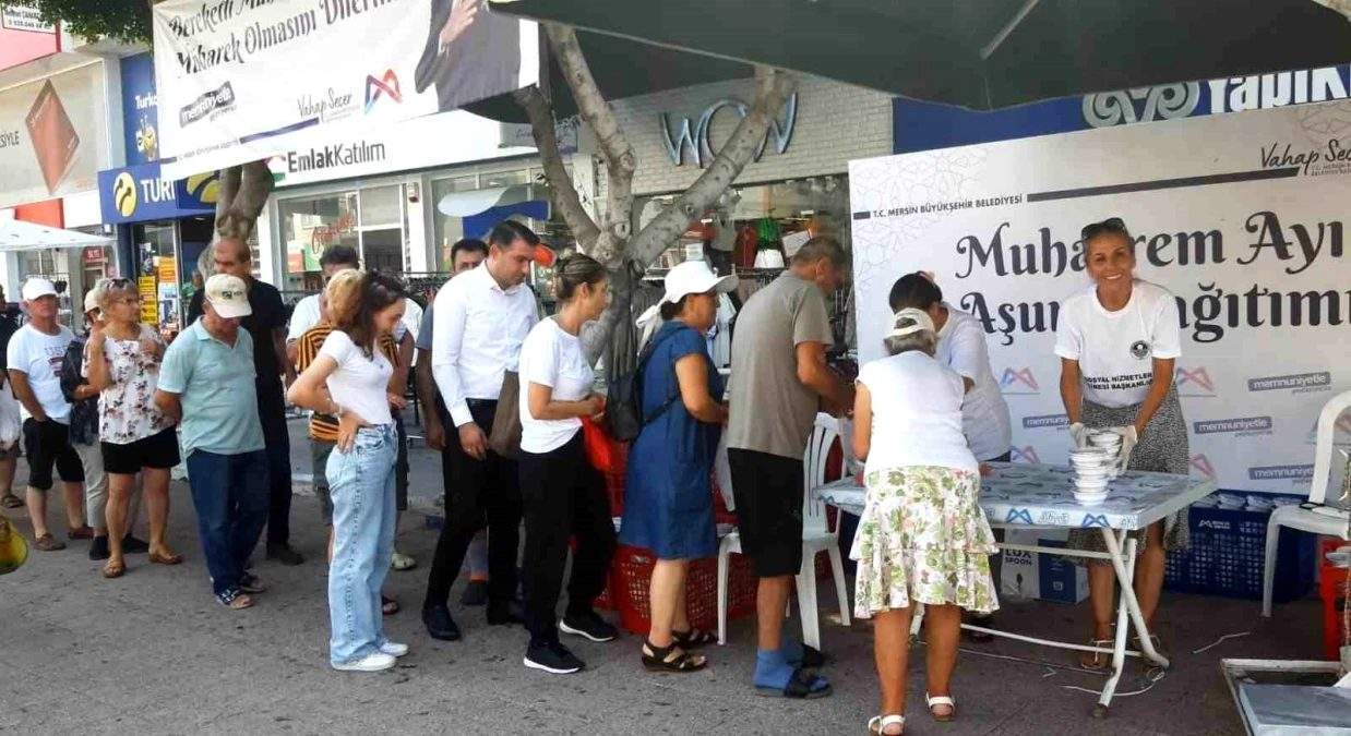 Mersin Büyükşehir Belediyesi, Muharrem Ayı dolayısıyla birlik, beraberlik ve bereketin simgesi olan aşure dağıtımında bulundu. 25 bin kap aşure 13 ilçede 13 farklı noktada vatandaşlara ikram edildi.