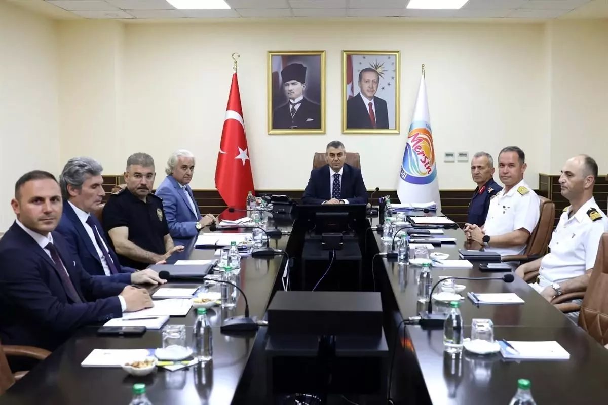 Mersin Valiliğinden yapılan açıklamaya göre, Güvenlik ve Asayiş Değerlendirme Toplantısı, Vali Atilla Toros başkanlığında yapıldı. Toplantıda, il genelinde güvenlik ve asayiş konularında yerine getirilen çalışmalar, alınan tedbirler, suç ve suçlulara karşı gerçekleştirilen operasyonlar ve ilgili diğer hususlar ele alındı. Mersin’in huzuru ve güvenliğini daim kılmak için emniyet, jandarma ve sahil güvenlik birimlerinin gece gündüz çalışmaya devam ettiği kaydedildi.