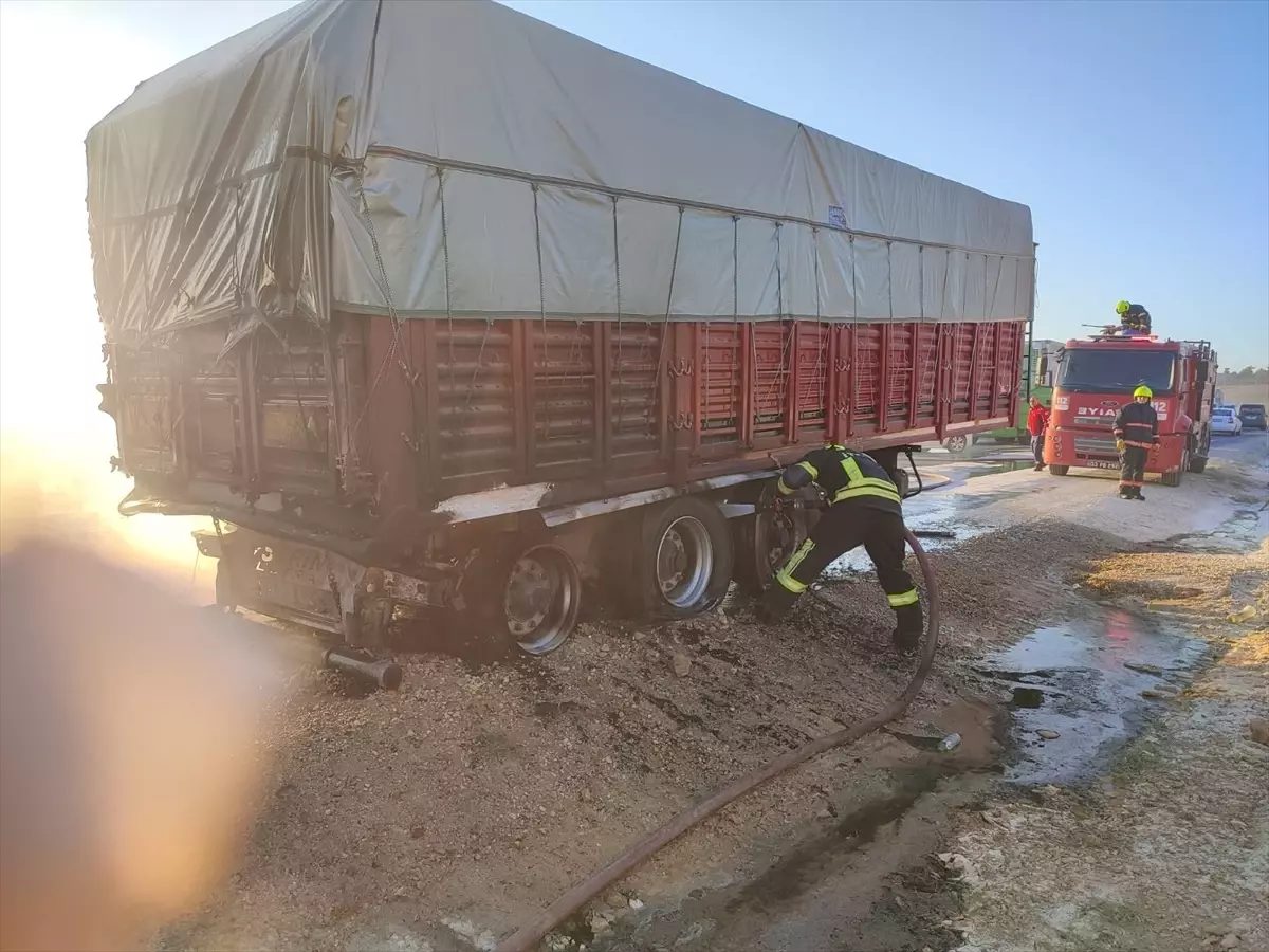 Yangın nedeniyle tırın dorse kısmında hasar oluştu.