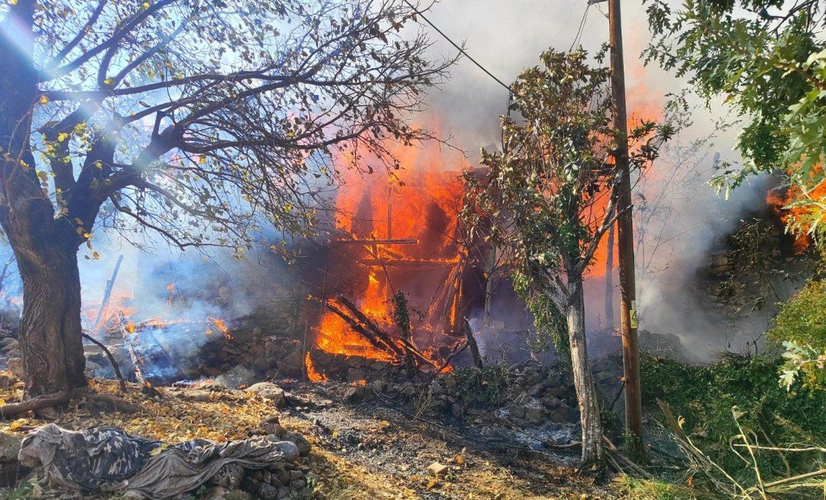 Kimsenin yaşamadığı evdeki yangın, ekiplerin ortak çalışmasıyla ormanlık alana yayılmadan söndürülürken, ev kullanılamaz hale geldi.