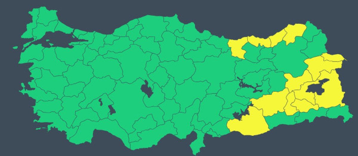 MGM’nin ‘sarı’ kodla uyardığı iller şöyle: