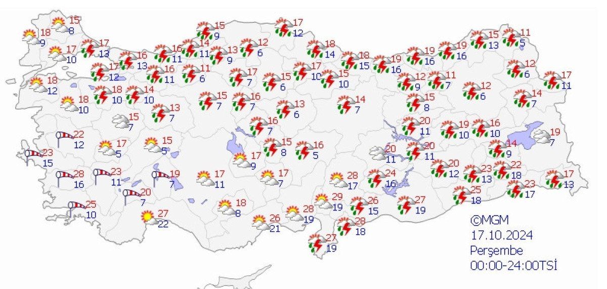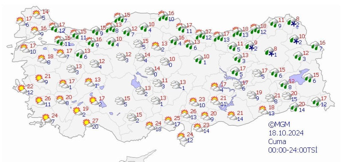 MGM’nin son değerlendirmesine göre 17 Ekim’den itibaren hava sıcaklıkları kuzey ve batı kesimlerinden başlamak üzere ülke genelinde hissedilir derecede (6 ila 12 derece) azalacak ve mevsim normallerinin altına inecek.