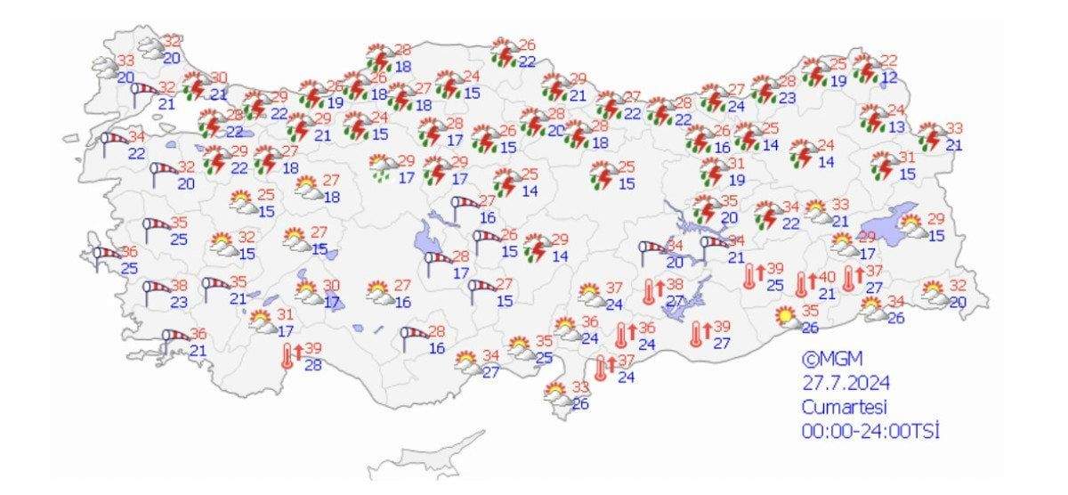 Yapılan tahminlere göre, sağanak ve gök gürültülü sağanak Düzce, Zonguldak, Bartın, Kastamonu ve Sinop’un kıyı kesimleri ile Sakarya’nın doğusunda ise akşam saatlerine kadar yerel kuvvetli olacak.