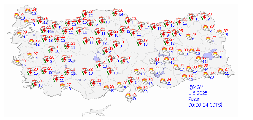 KUVVETLİ YAĞIŞ UYARISI: Yağışların, Ege’nin güneydoğusu, Batı Akdeniz, İç Anadolu’nun güneyi ile Edirne, Kırklareli, Tekirdağ, Adana, Ankara ve Çankırı çevrelerinde yerel kuvvetli olması beklendiğinden yaşanabilecek olumsuzluklara karşı dikkatli ve tedbirli olunması gerekmektedir.
