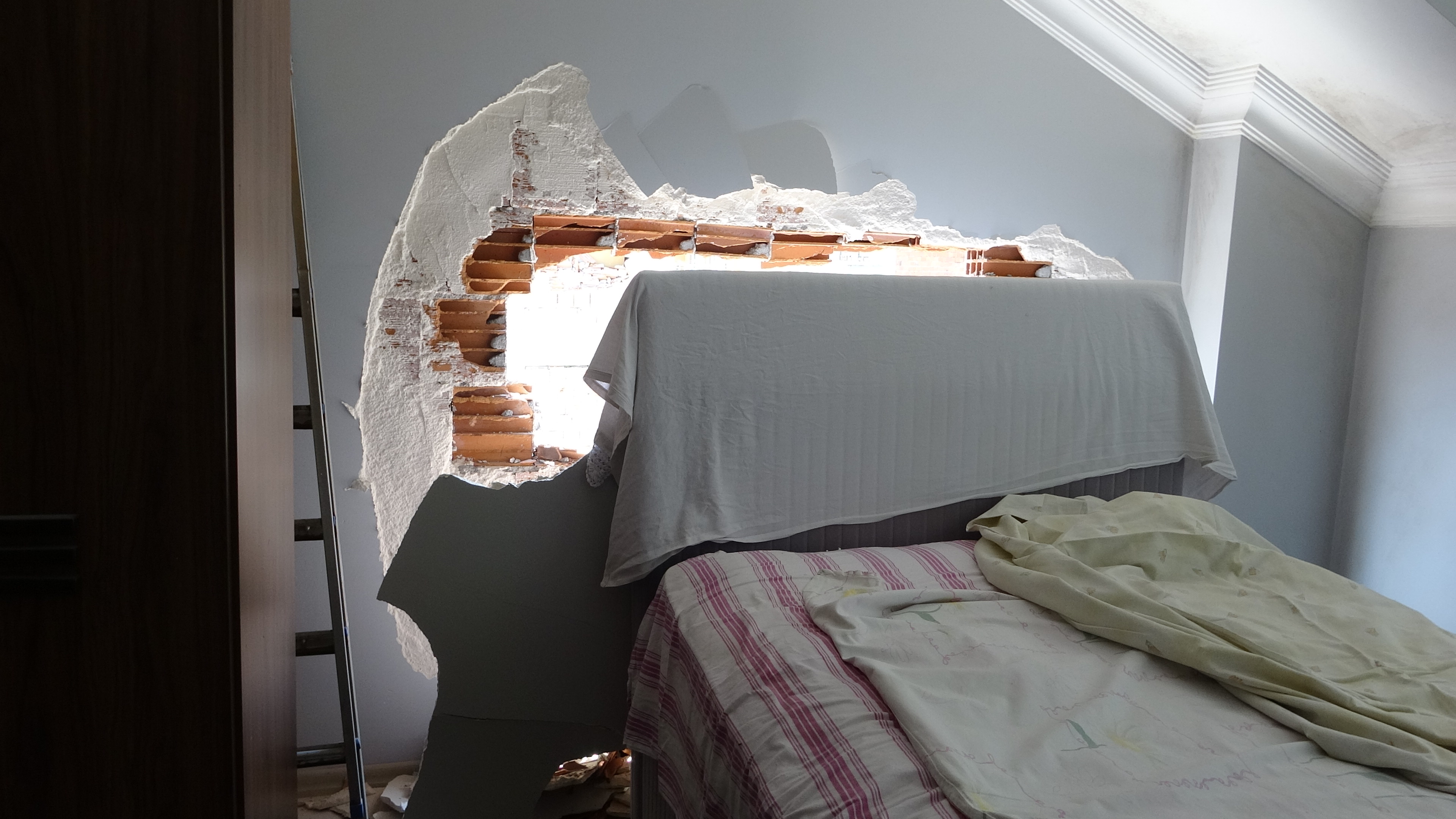 Bitişikteki 4 katlı binanın 4’üncü katında yaşayan Kibariye Şengöl, “Dün akşam gelip birden burayı yıkmaya başladılar. Saat 1 civarıydı; sabaha kadar uyuyamadık. Evimin her tarafı yıkıldı. Yatak odası, kolonlar ve çatıda hasar var. Öğrendiğime göre özel bir firma yapıyormuş. Bir an önce yapılsın, yarın yağmur yağacakmış. Biz sabahtan beri yetkililerle telefonda konuşuyoruz; herkes birbirine yönlendiriyor. Kimsenin geldiği de yok; mağduriyetimin giderilmesini istiyorum” diye konuştu.
