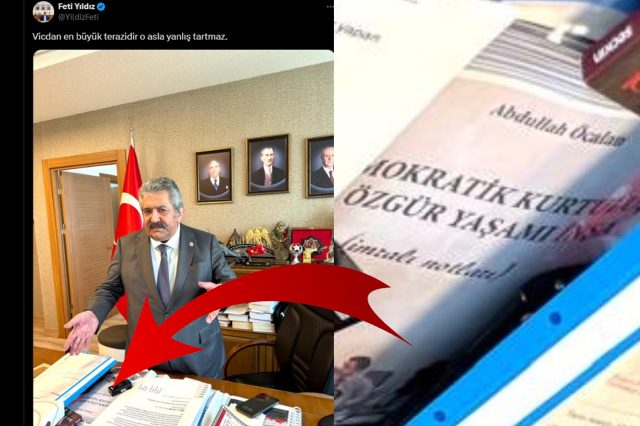 Yıldız’ın odasından çekilen fotoğrafta terör örgütü PKK lideri Abdullah Öcalan’ın ‘Demokratik Kurtuluş ve Özgür Yaşamı İnşa (İmralı Notları)’ başlıklı kitabının yer aldığı görüldü.