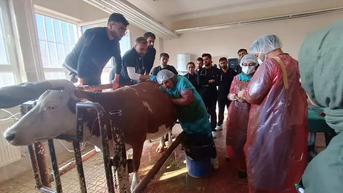 Klinik Bilimler Bölümü Öğretim Üyesi Prof. Dr. Lokman Aslan ve ekibince yapılan kontrollerde ineğin midesinde metal parçaları tespit edildi.