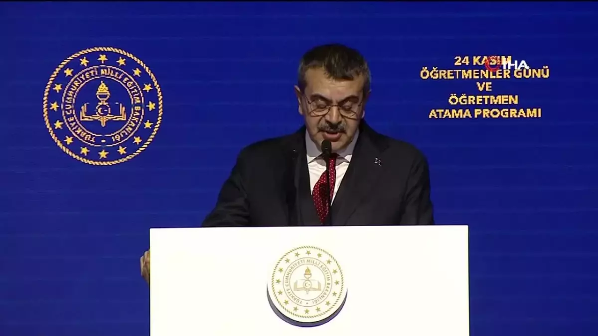 Milli Eğitim Bakanı Yusuf Tekin, İstanbul’da Cumhurbaşkanı Recep Tayyip Erdoğan’ın da katıldığı “24 Kasım Öğretmenler Günü ve Öğretmen Atama Programı’nda konuştu. Tüm öğretmenlerin Öğretmenler Günü’nü kutlayan Bakan Tekin, “24 Kasım, herhangi bir meslek grubunun onurlandırıldığı sembolik bir günü değil, hayatımızın her anına eşlik eden katkılarıyla üzerimizdeki hakları baki olan öğretmenlerimizin şahsında ve rehberliğinde idrak ettiğimiz Büyük Türkiye idealini yansıtmaktadır. Daha adil ve daha özgür bir dünyanın inşası için talipli olduğumuz büyük medeniyet vizyonumuzun her yönüyle ve tüm hedefleriyle birlikte somutlaşmasına karşılık gelen bu ideal, hiç kuşku yok ki, maarif ordumuzun çabalarıyla hayat bulacaktır. Eğitim, temel hak ve hürriyetlerin en güçlü teminatıdır. Bizler, eğitim sistemimizi inşa ederken, demokrasi ve hukuk devleti prensibini, toplumumuzun her bir ferdine eşit ve adil fırsatlar sunan, inanç ve yaşam biçimlerini özgürce yaşayabilmelerini sağlayan bir teminat olarak görüyoruz. Her evladımızı aynı sevgi ve kararlılıkla kucaklayan bu yaklaşım, milletimizin kadim değerlerini çağın gerekleriyle mezcetmekte, güçlü ve özgür nesiller yetiştirmenin en sağlam zeminini oluşturmaktadır. Eğitim ailesi olarak 2024-2025 eğitim-öğretim döneminde üç temel politikayı ana gündemimize almış bulunuyoruz: Türkiye Yüzyılı Maarif Modeli’nin uygulanması, Mesleki ve Teknik Eğitim Politika Belgesi’nin hayata geçirilmesi ve Okul-Aile İş Birliği’nin güçlendirilmesi. Her biri, eğitim sistemimizi daha ileriye taşımak, bireyden topluma uzanan güçlü bir bağ kurmak ve Türkiye Yüzyılı hedeflerine emin adımlarla ulaşmak için stratejik bir adım niteliğindedir” dedi.