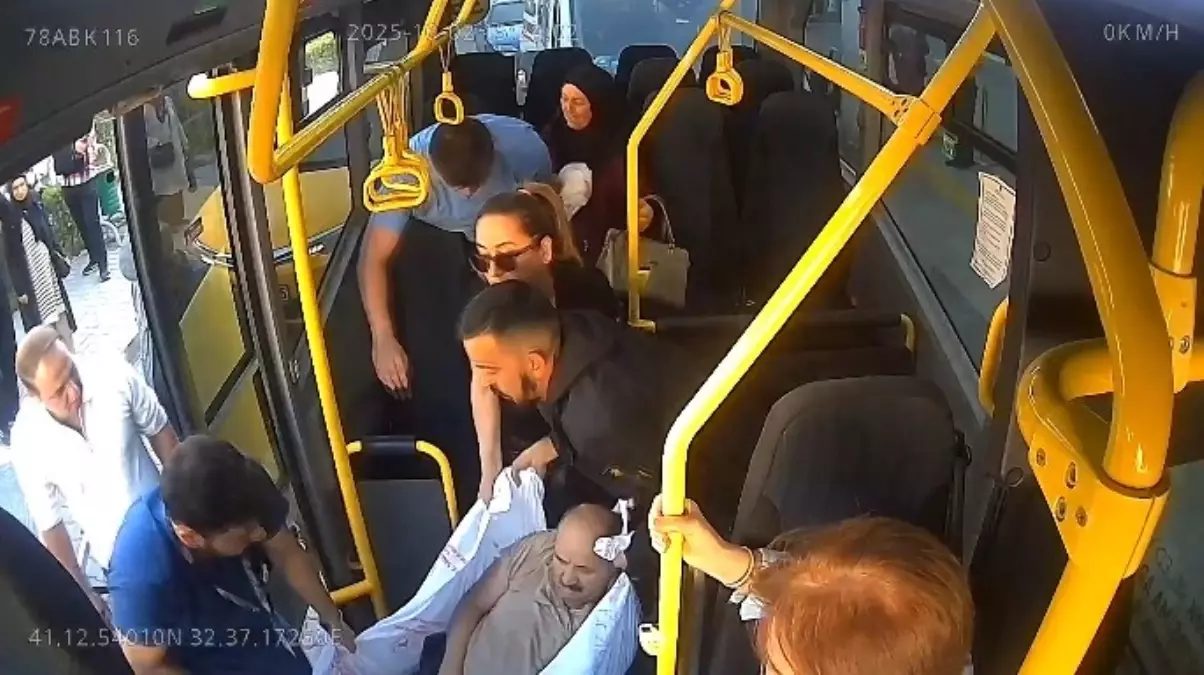 KARABÜK Belediyesi’ne ait yolcu minibüsünde çalışan Uğur Dereli, rahatsızlanan kişiyi güzergah değiştirerek hastaneye yetiştirdi. O anlar, aracın güvenlik kamerasına yansıdı.