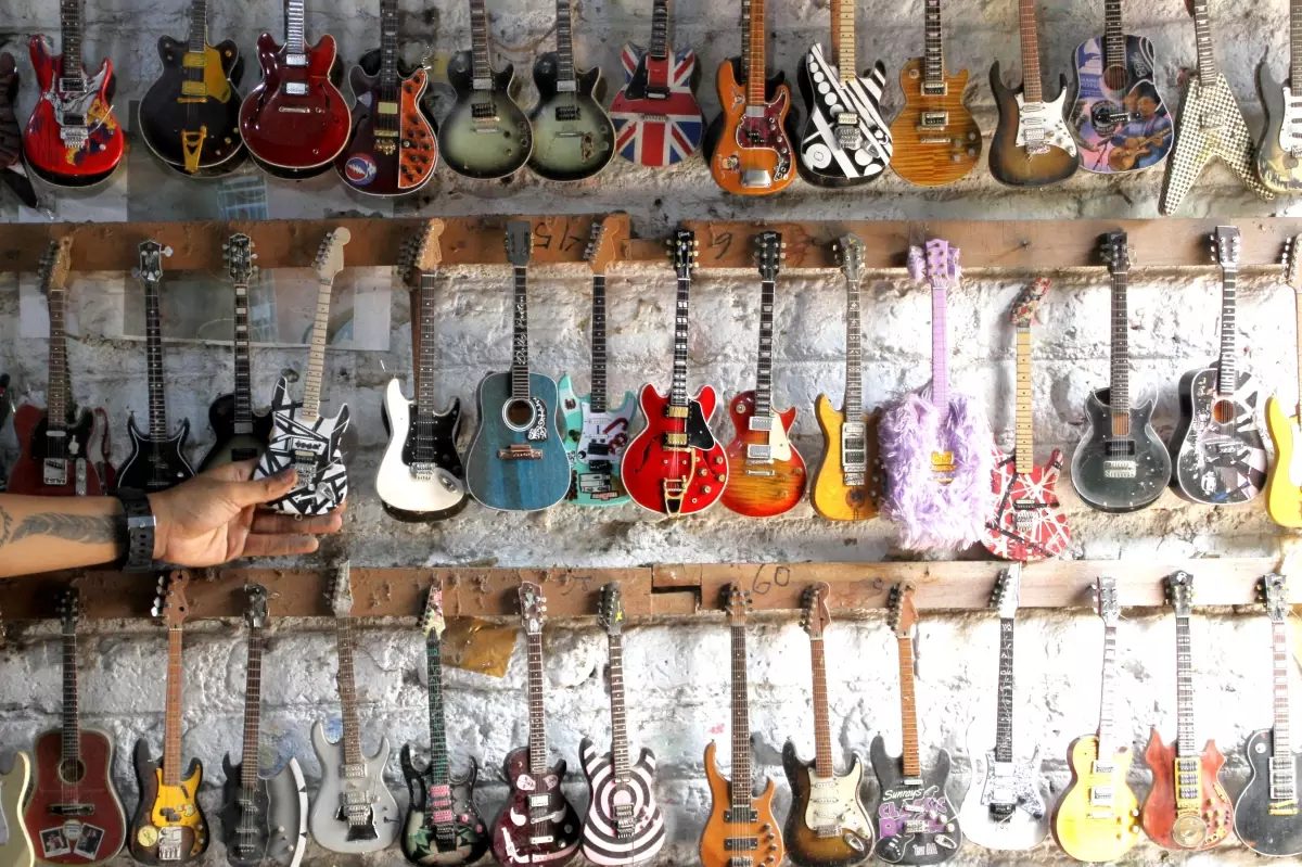 KLATEN, 4 Temmuz (Xinhua) — Endonezya’nın Orta Cava eyaletindeki Klaten kentinde bulunan bir el sanatları atölyesi, ürettiği çeşitli minyatür gitar koleksiyonuyla dikkat çekiyor. Minyatür gitarlar maun, alüminyum, fiber, reçine ve teller kullanılarak yapılıyor.