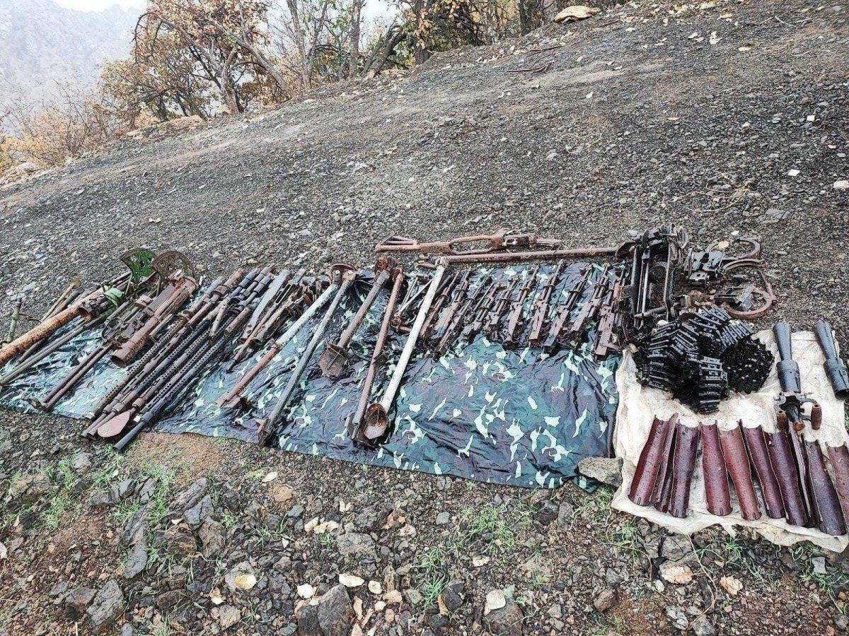 11 adet AK-47 piyade tüfeği ve 1 adet şarjörü, Doçka makineli tüfeğe ait 1 adet çatal ayak, 2 adet hava sehpası, 14 adet tüfek namlusu, 2 adet gövdesi, 2 adet alev gizleyen, 241 adet Doçka makineli tüfek mühimmatı, 82 mm Havan namlu döşeme, 3 adet el kundağı, 4 adet çatal ayak, 6 adet boş şerit, 11 adet RPG-7 üst kundağı.