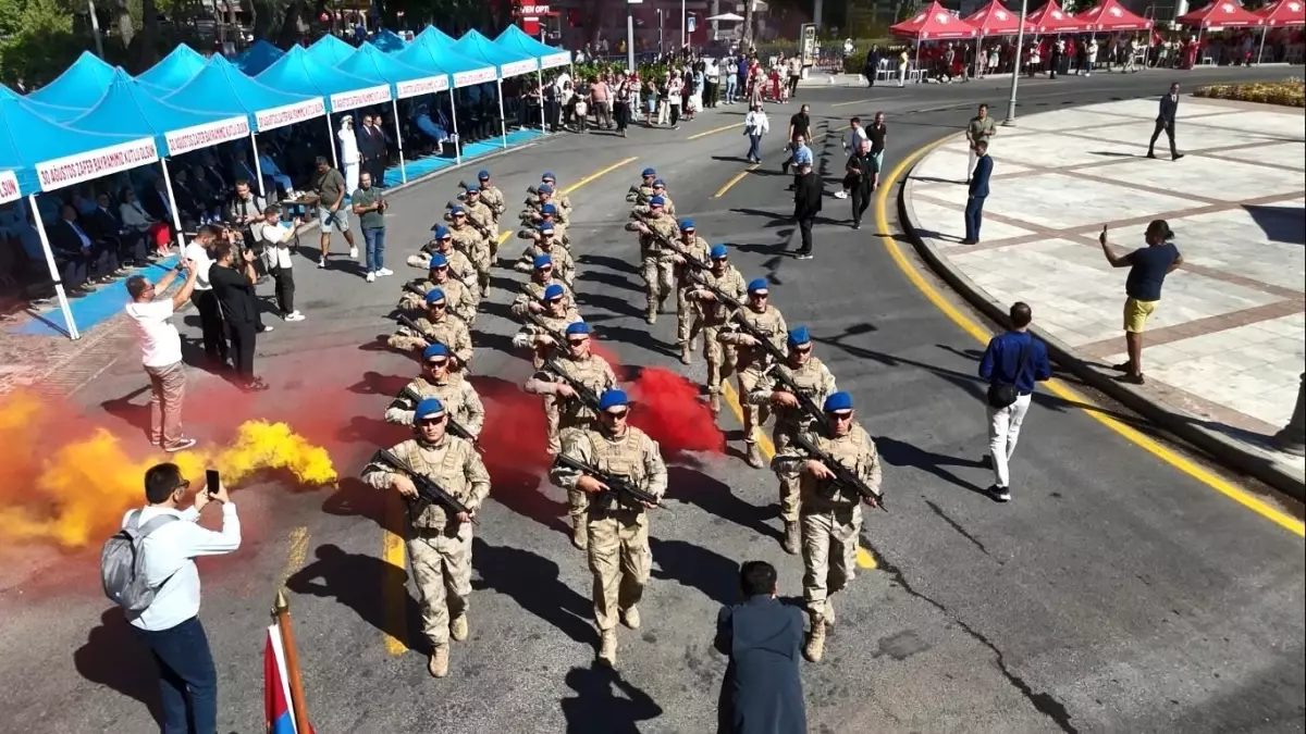 Kutlamalar, yeniden Cumhuriyet Meydanı’nda devam etti. Öğrencilerin okuduğu şiirlerle bayram coşkusu daha da artarken, Jandarma Maliye Üsteğmen Osman Çakmak günün anlam ve önemini anlatan bir konuşma yaptı. Konuşmanın ardından Emirbeyazıt İlkokulu Folklor Ekibi ve Muğla Büyükşehir Belediyesi Halk Oyunları Topluluğu sahne aldı. Halk oyunları gösterileri, vatandaşlara duygu dolu anlar yaşatırken aynı zamanda renkli görüntülere sahne oldu. Törenler, resmi geçit ile taçlandırıldı. Bayraklarla süslenen kortejin Cumhuriyet Meydanı’ndan geçişi sırasında vatandaşlar alkışlarla eşlik ederek coşkuya ortak oldu. 30 Ağustos Zafer Bayramı’nın 103. yıl dönümü kutlamalarına, Muğla Valisi İdris Akbıyık, Güney Görev Grup Komutanı Koramiral Rafet Oktar, Muğla Büyükşehir Belediye Başkanı Ahmet Aras, Menteşe Kaymakamı Mehmet Eriş, Menteşe Belediye Başkanı Gonca Köksal Aras, milletvekilleri, siyasi parti temsilcileri, askeri erkan, kurum amirleri ve çok sayıda vatandaş katıldı. – MUĞLA