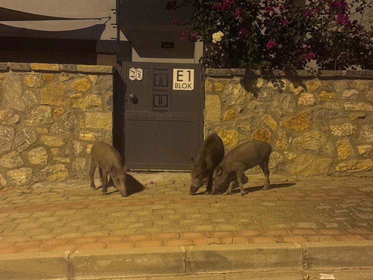 Muğla’nın Bodrum ilçesinde aç kalan domuzlar görüntülendi.
