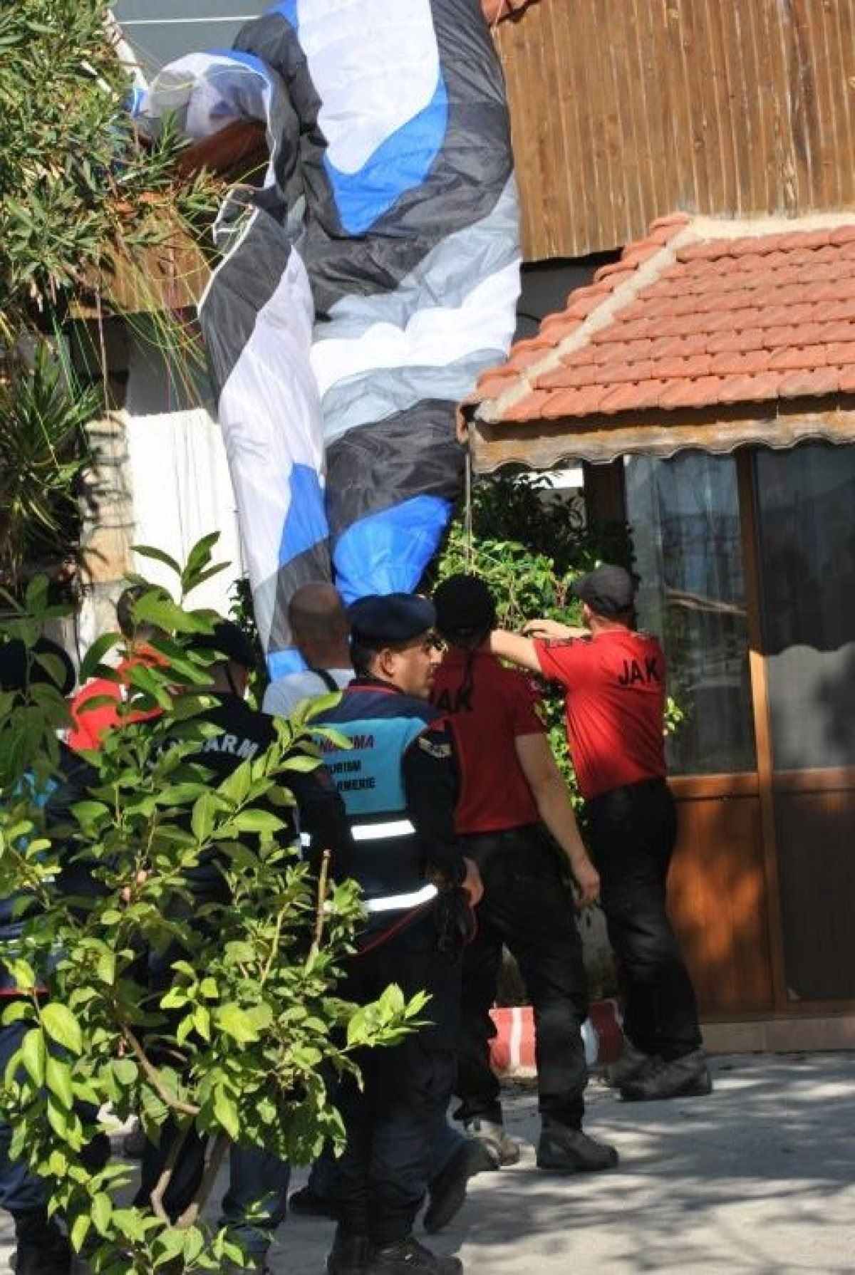 Çatıda kalan paraşüt ise JAK görevlileri tarafından indirilirken, İsviçreli paraşütçünün ayağında kırık olduğu ve tedavi altına alındığı kaydedildi.