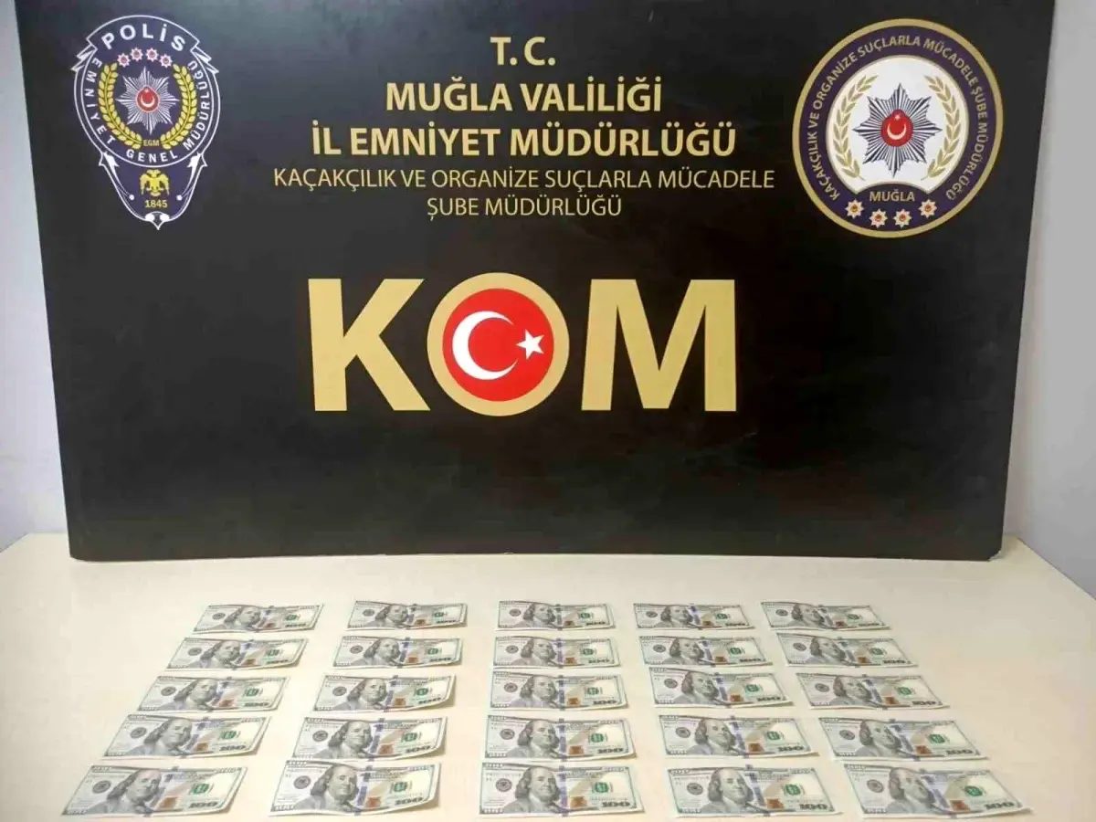 Muğla İl Emniyet Müdürlüğü Kaçakçılık ve Organize Suçlarla Mücadele Şube Müdürlüğü (KOM) ekipleri, Menteşe ilçesinde piyasaya sahte dolar sürüleceği bilgisi sonrası şahsı takibe aldı. Piyasaya sahte para sürmeye çalıştığı tespit edilen şüpheli, polis ekiplerince yakalandı. Şahsın üzerinde yapılan aramada 25 adet sahte 100 dolarlık banknot ele geçirildi.