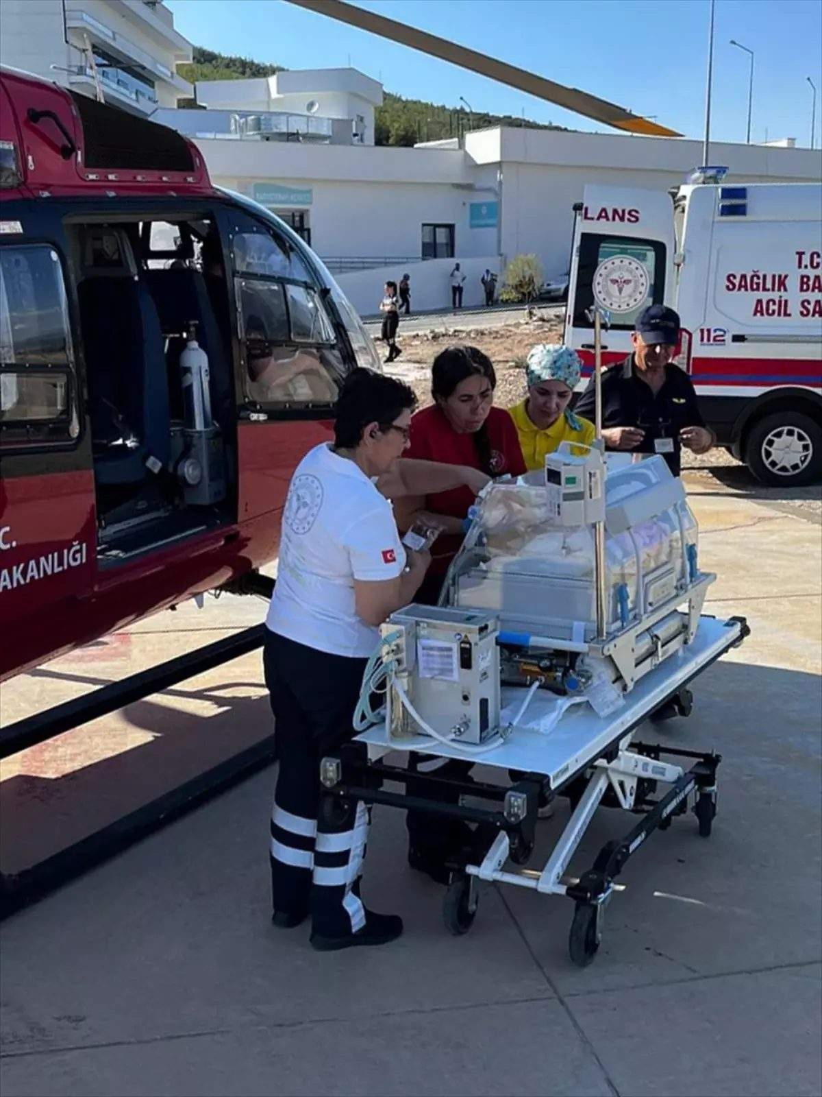 Bebek, Muğla Eğitim ve Araştırma Hastanesi bahçesindeki piste inen helikopter ile Akdeniz Üniversitesi Hastanesi’ne sevk edildi.