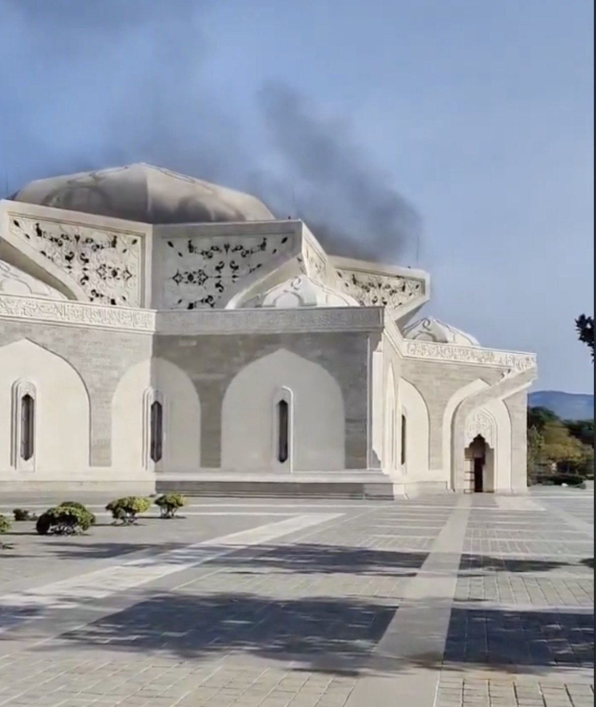 Mezara ulaşan muhalifler önce mezarı çiğnedi sonra da anıtı ateşe verdi.