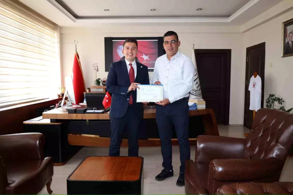 Karacasu Kaymakamı Mehmet Gündoğdu, Bahçeköy Mahalle Muhtarı’nın orman yangınlarına karşı bireysel gayretleriyle oluşturduğu acil müdahale noktaları için kendisine teşekkür belgesi takdim etti.