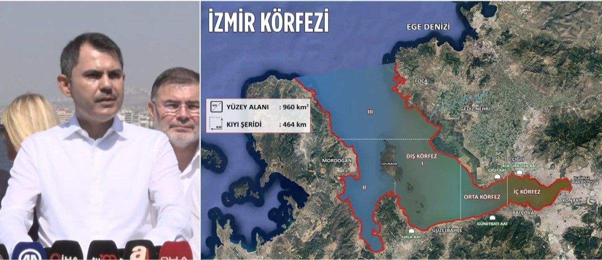 Bakan Kurum, İzmir Körfezi'ndeki kirliliğe dikkat çekerek, "Denizde oksijen kalmamış, bazı noktalarda yaşam yok." ifadelerini kullandı.